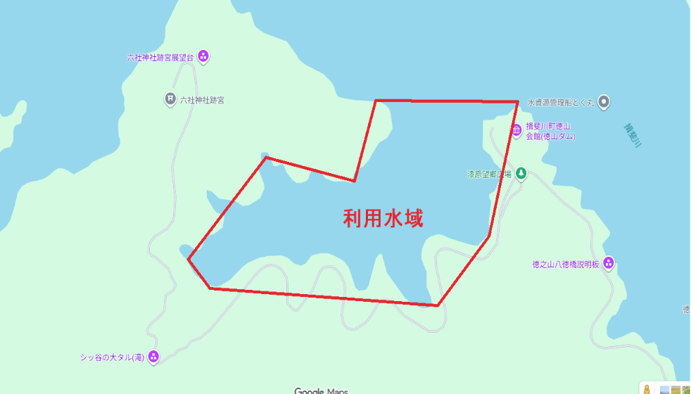 (3) ダム水域内における事故、事件について、利用者及び当事者において処理 するものとし、徳山会館指定管理者は一切の責任を負いません。